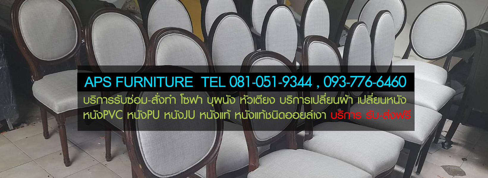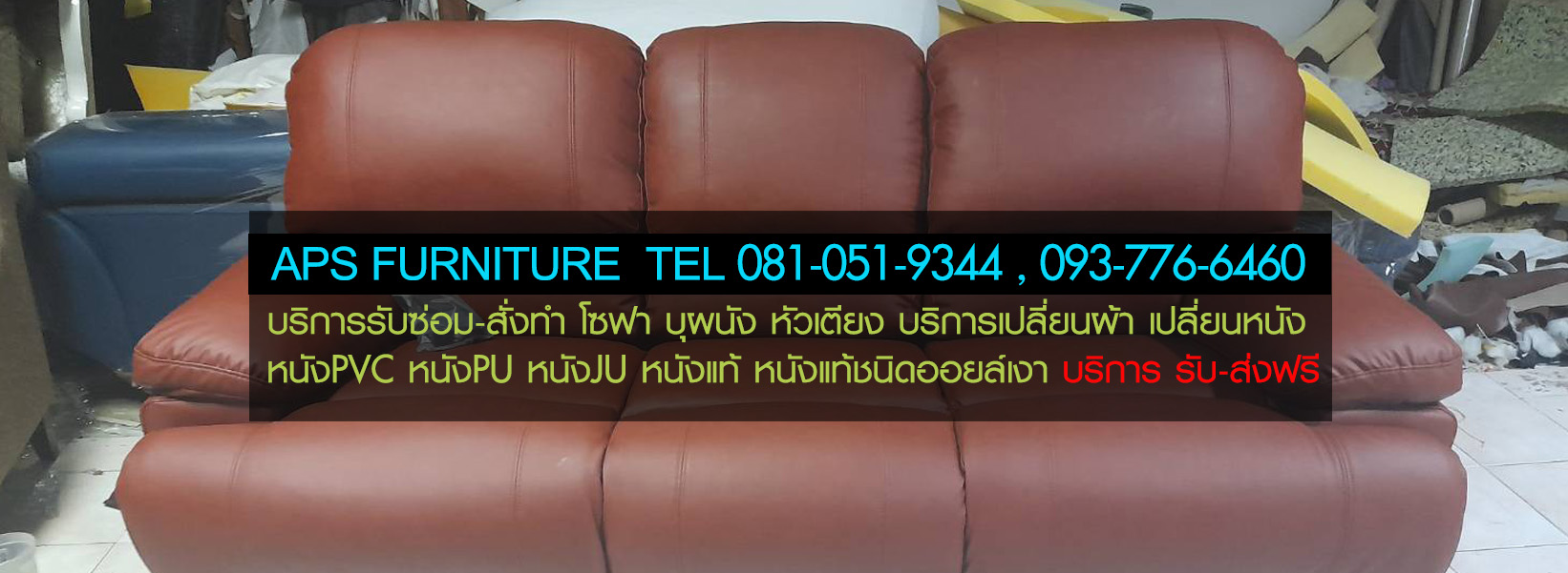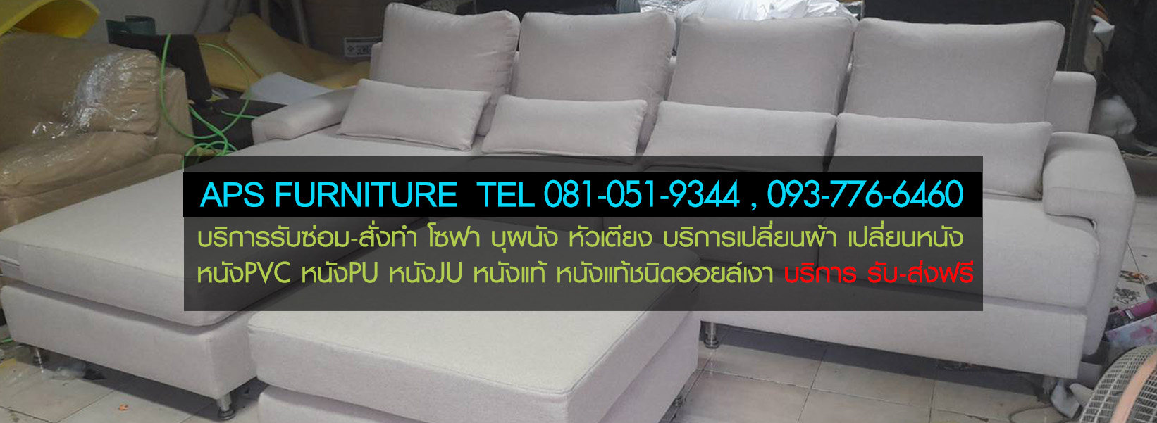 ถ้าคุณมีปัญหาเกี่ยวกับโซฟา โซฟาหนังลอก หนังโซฟาขาด โซฟาหนังหมดสภาพ เสื่อมสภาพเนื่องจากมีอายุการใช้งานที่นาน ต้องการที่จะเปลี่ยนหนังหุ้มโซฟา หรือผ้าหุ้มโซฟาขาด ต้องการที่จะเปลี่ยนผ้าหุ้มโซฟา หรือโซฟาหมดสภาพฟองน้ำยุบ สปริงหลุด โครงหัก ต้องการจะเปลี่ยนที่นั่ง เสริมฟองน้ำ เราสามารถแก้ไขปัญหาให้คุณได้ ทางร้านมีบริการ ซ่อมโซฟาทุกชนิด เปลี่ยนหนังโซฟาหนัง pvc pu ju หนังแท้ หรือหนังเทียมอื่นๆ หนังนำเข้าและผ้าทุกชนิด เสริมใยสังเคราะห์ให้ดูนุ่มขึ้น เปลี่ยนเฉพาะจุด หรือ จะเปลี่ยนทั้งหมดทางเรามีบริการ จะเป็นโซฟาทรงโมเดิร์น โซฟาตัวแอล โซฟาหลุยส์ โซฟาเบส หรือจะสั่งทำโซฟาให้เข้ากับพื้นที่มุมห้องต่างๆทางร้านรับบริการสั่งผลิตได้ตาม แบบที่ลูกค้าต้องการ ทางร้านมีบริการ รับ-ส่ง ฟรี ทั่วกรุงเทพฯและปริมณฑล